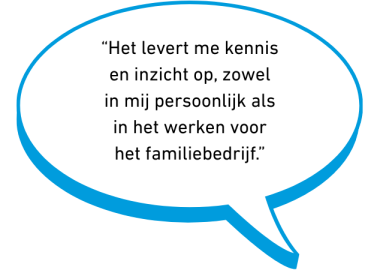 Deze cursus Opvolgen in het Familiebedrijf is ontwikkeld voor jonge mensen waarvan de ouders een familiebedrijf met enige omvang (20-500 medewerkers) hebben. Deelnemers komen uit diverse branches, studeren nog of hebben al de nodige werkervaring binnen of buiten het familiebedrijf opgedaan. Als potentiële opvolger leer je tijdens de interactieve workshops ook van de ervaringen van andere deelnemers. Uiteraard zorgen wij voor een vertrouwde omgeving waarin persoonlijke en bedrijfsinformatie binnenskamers blijft.
